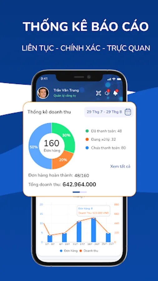 - Receive reports, update work progress continuously and visually in the form of charts.