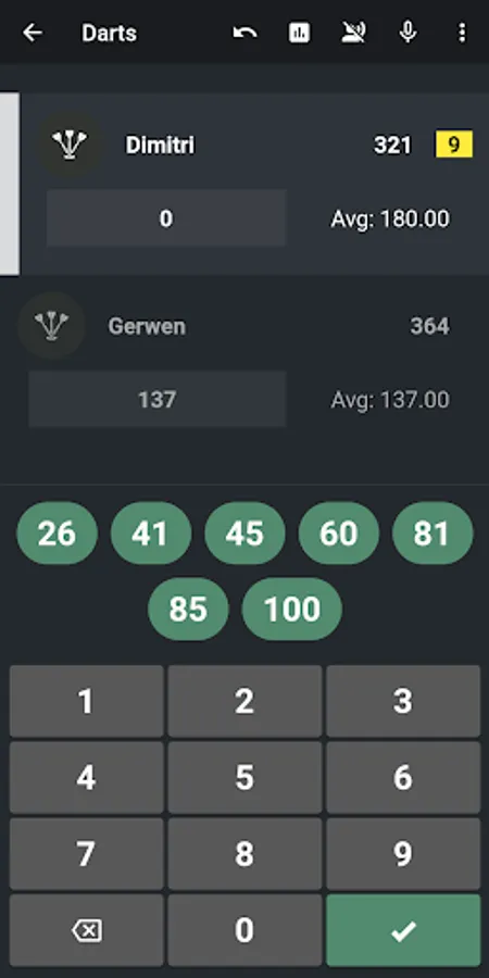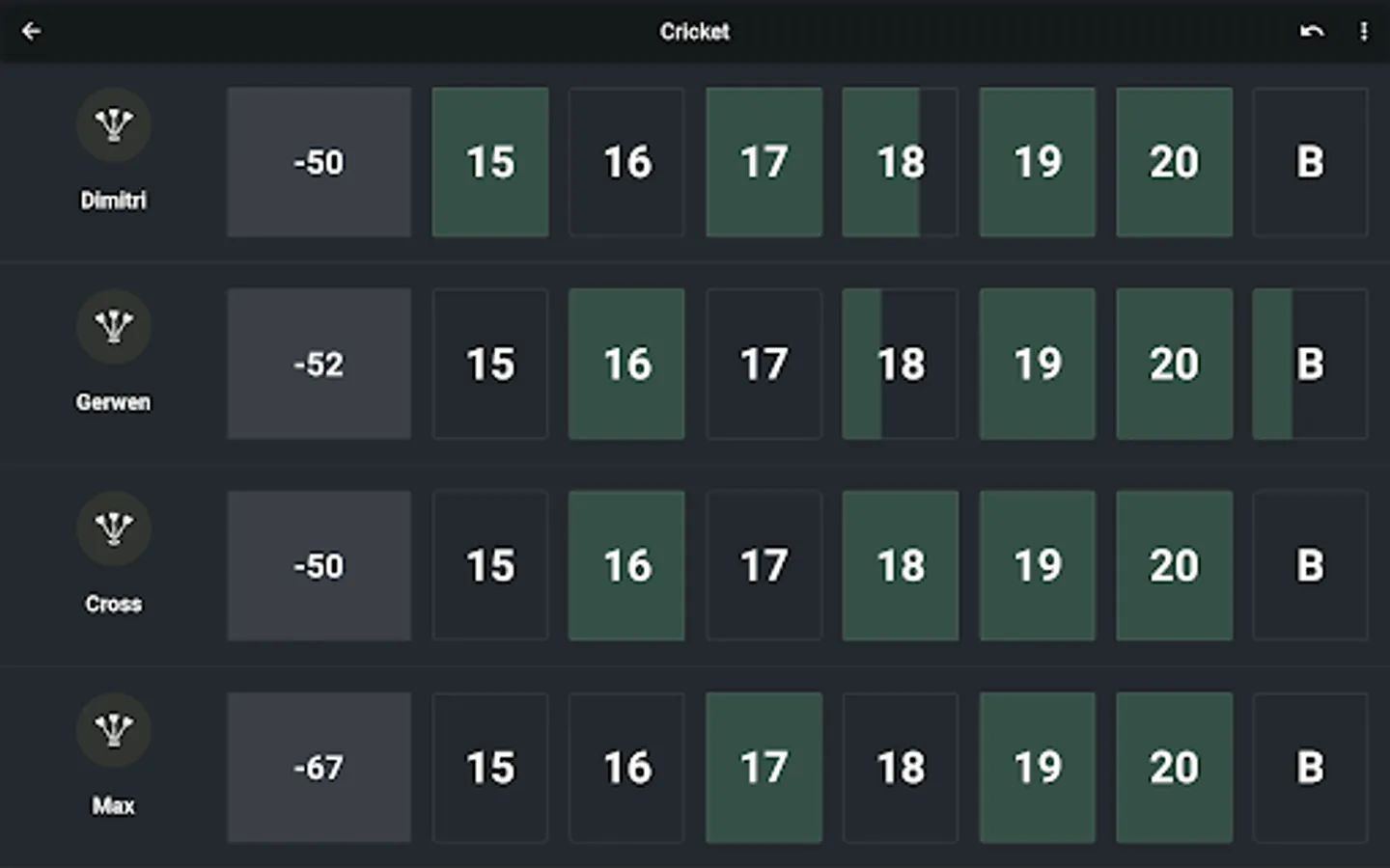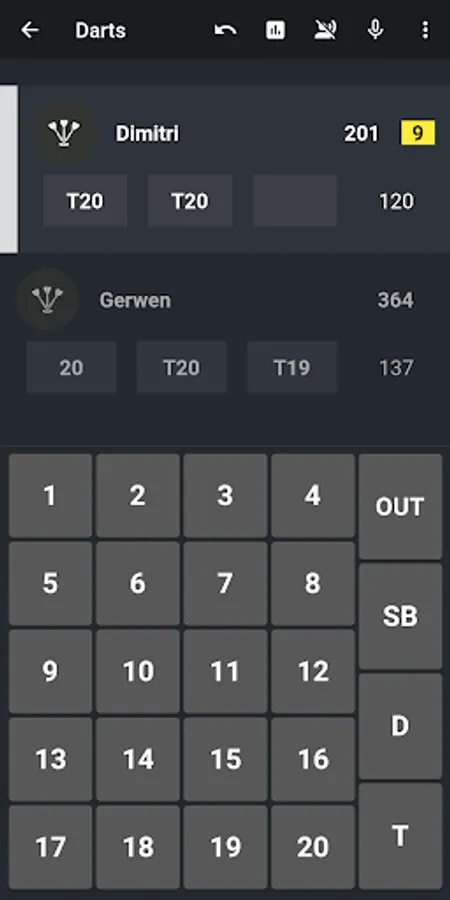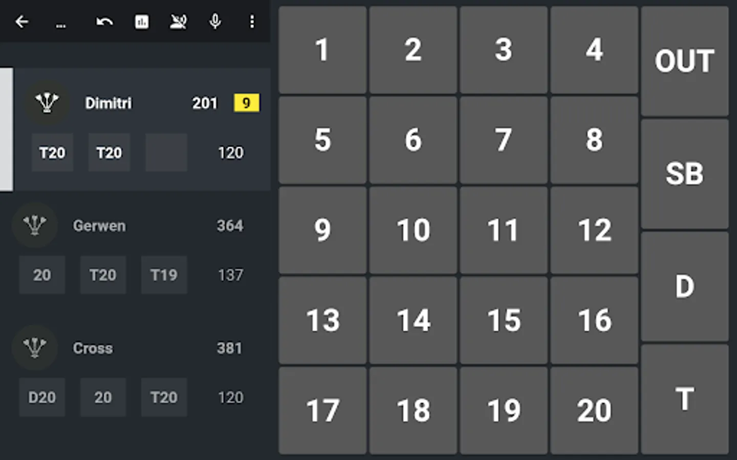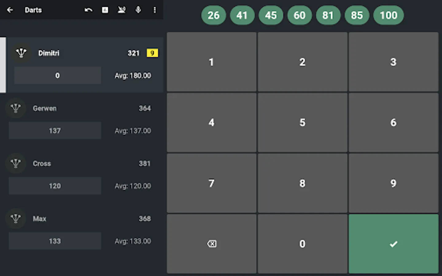 Welcome to our unique darts scorekeeping app! Our special feature is a virtual dartboard where you can enter your score by tapping directly on the dart fields. It's like having a real dartboard in the palm of your hand!