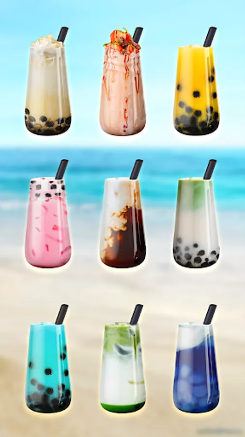 Let's make beautiful bubble tea with colorful and interesting toppings like cherry, boba... Make the perfect tasty, juice tea for kids, family, and your friends.