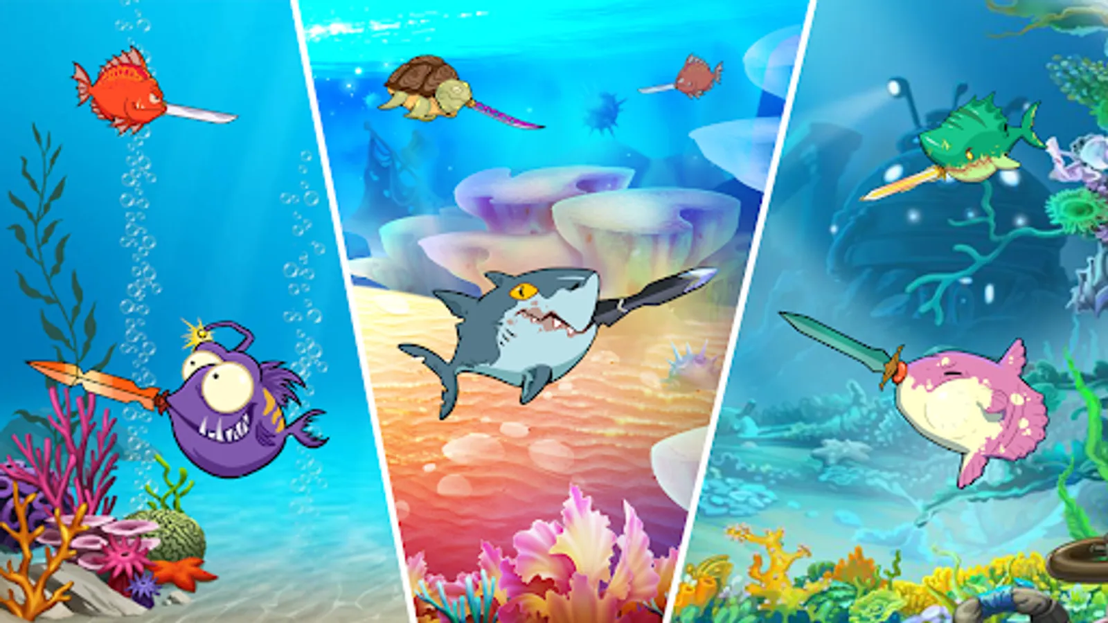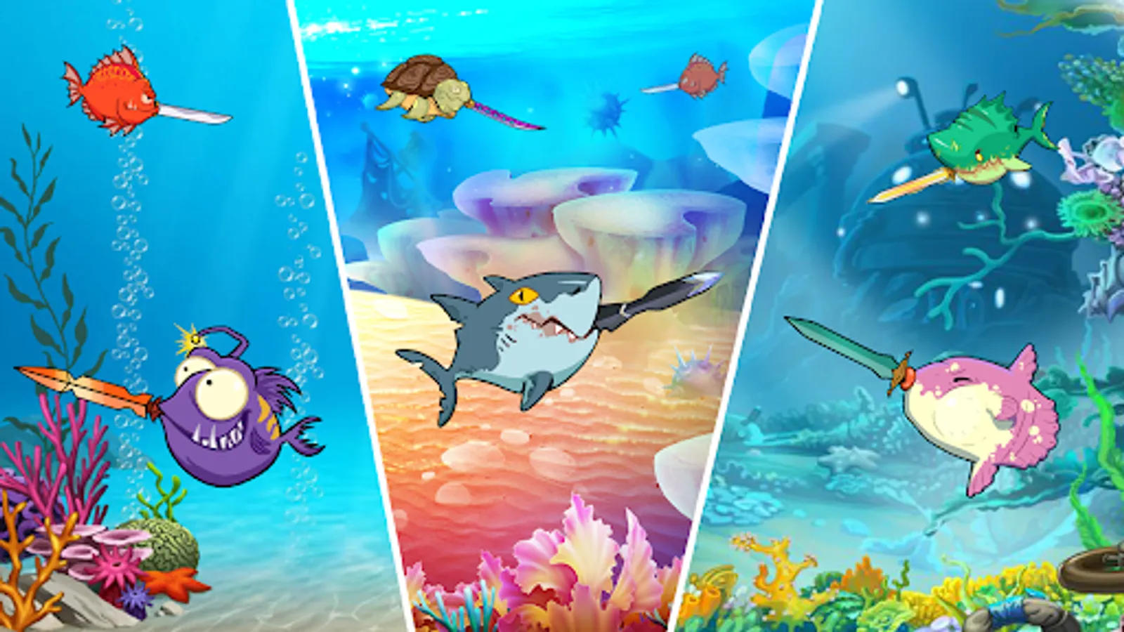 - Collect your reward after each game to upgrade fish and sword.