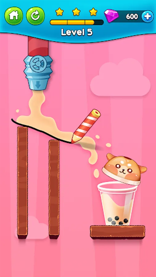 In Tasty Boba: Draw To Drink, you only need to tap with perfect draw line and release the water so it can go all the way through to the glass and bring a smile again. Avoid many obstacles, save as much water you can or you will fail.