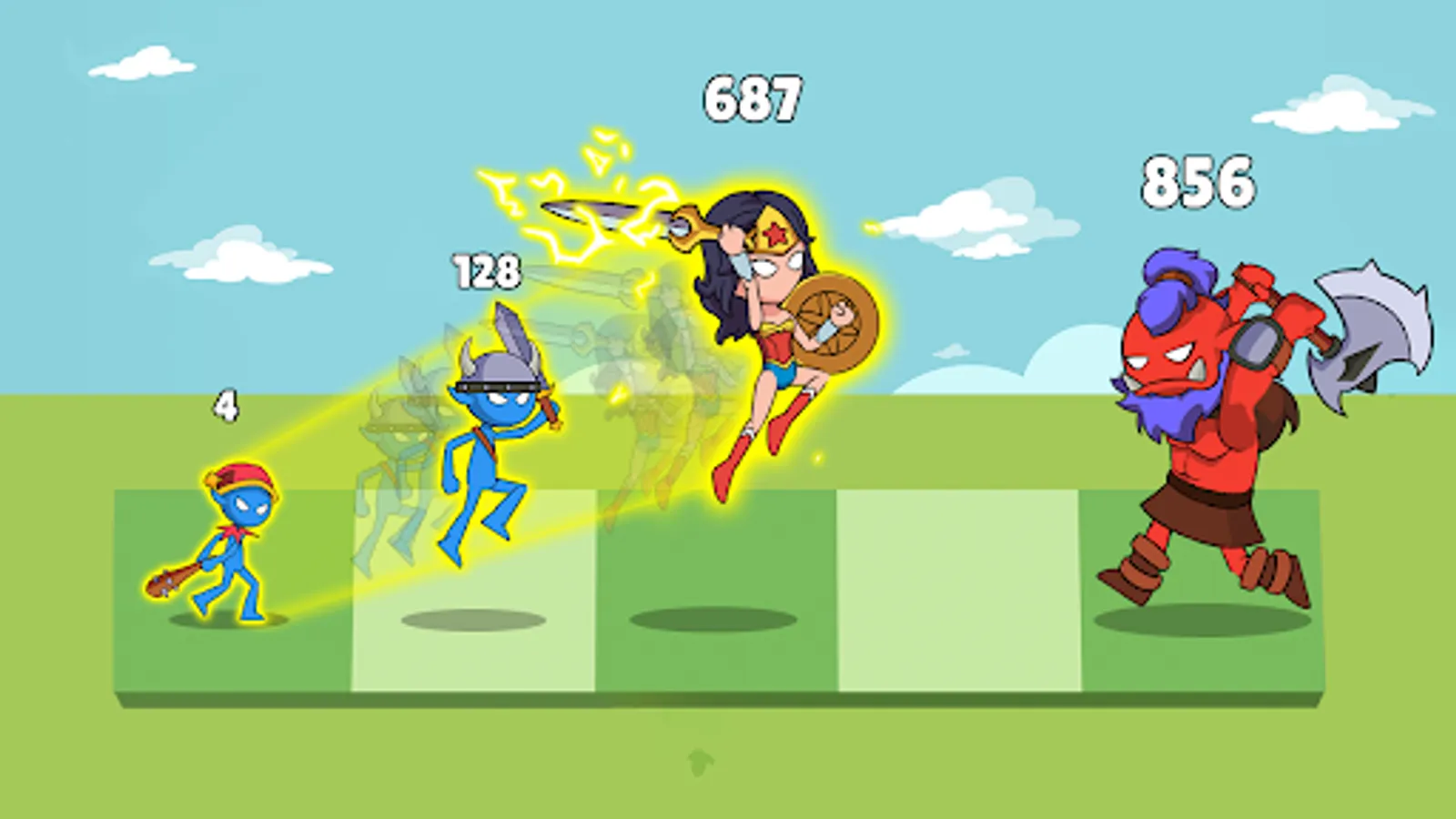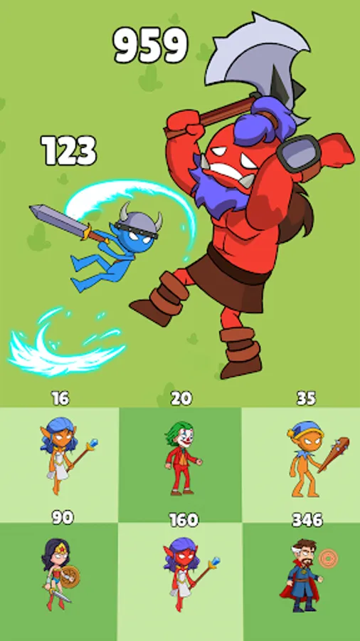 - Ways to develop mighty heroes: level up, upgrade skills, merge them with others, turn them into legends