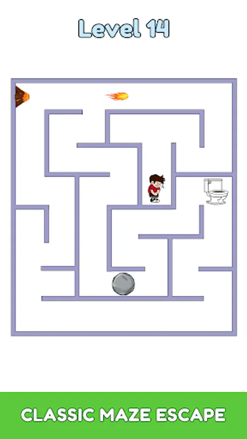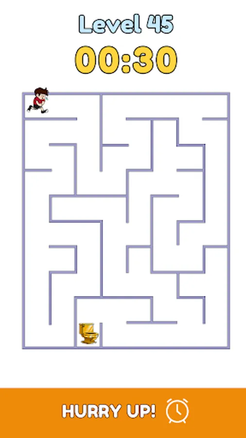 - Easy to Play: Draw to guide the character through the maze and find the toilet.