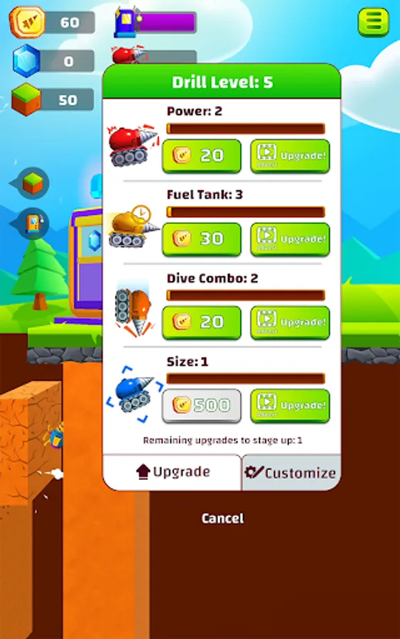 💣 UNLOCK powerful boosters to progress and dig in faster (dynamite, mini-bots, unlimited fuel, giant digger...)