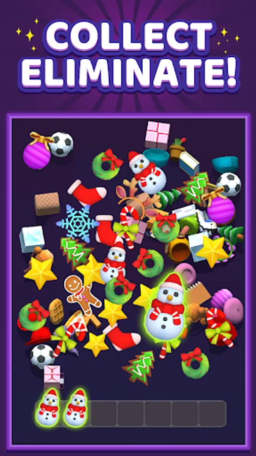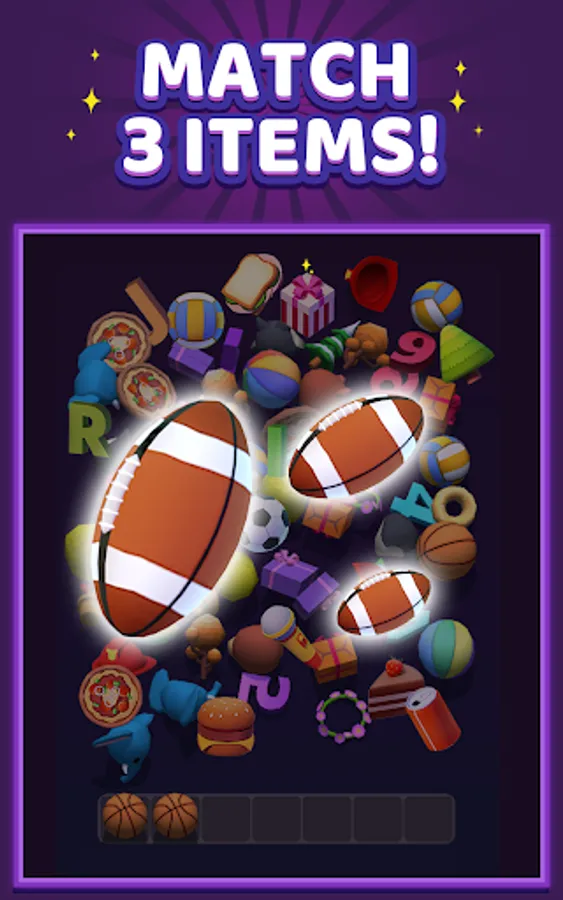Pick up three same 3d elements from a pile of messed-up items and eliminate them.