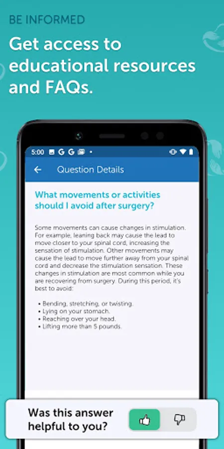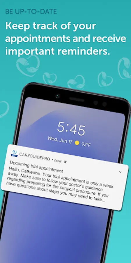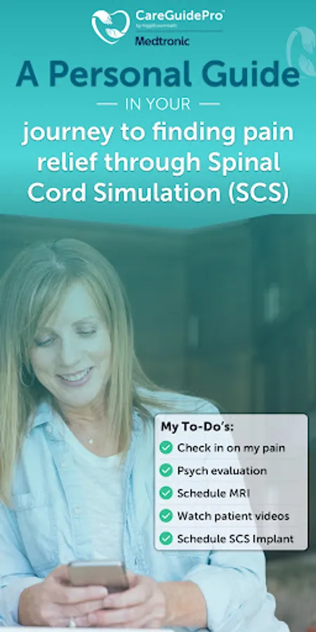 CareGuidePro™ helps support patients during the process of spinal cord stimulation procedures, providing access to educational resources, appointment reminders, and progress tracking throughout the trial, implant, and post implant phases. CareGuidePro™ will :