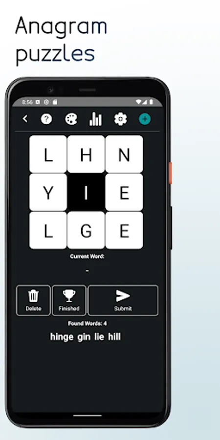 Submit as many words as you can from the 9 letters on the screen but make sure you include the middle letter!