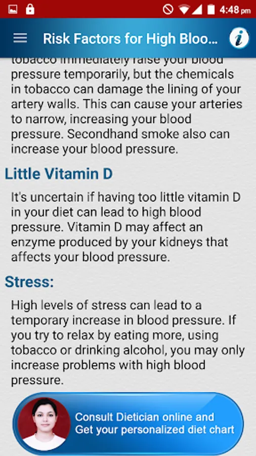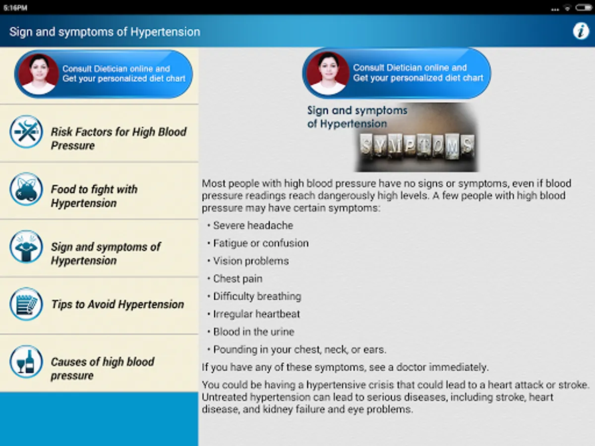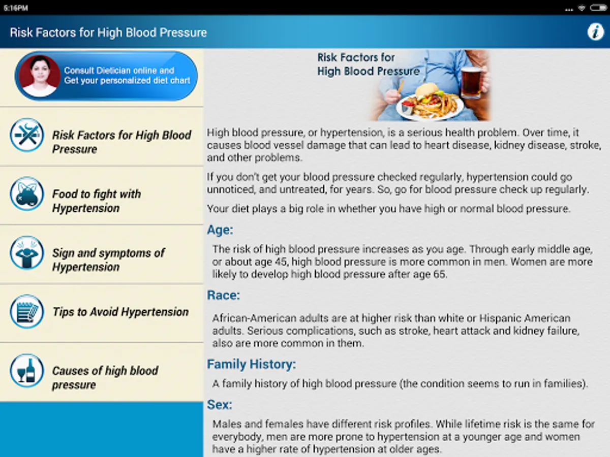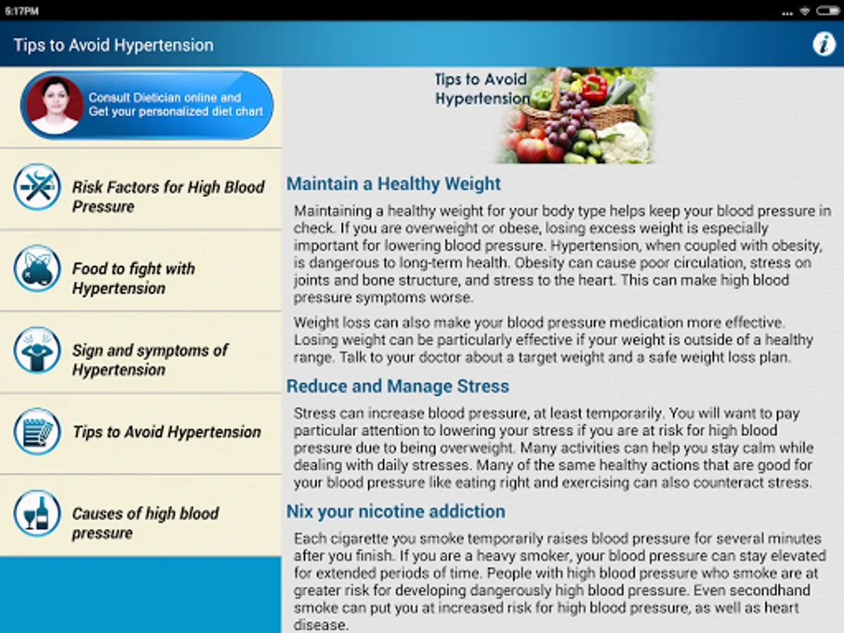 High Blood Pressure Diet Tips is a Free App specially designed for High BP Help Tips and awareness for Hypertension Patients. App covers information about High Blood Pressure Hypertension such as Types causes risk factors friendly foods and foods to avoid etc. Dieting ideas and tips of this app have been carefully reviewed by Experienced and professional dietitians carefully.