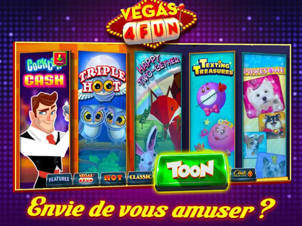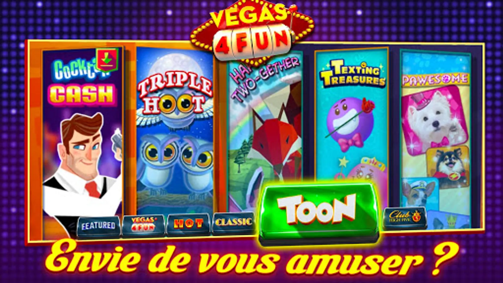 Enjoy a VIP experience in Vegas in Vegas 4 Fun! Go for the destination of free premium slots, offering slots rooms ideal for any player! Try your luck by playing famous slot machine games, both machines with funny cartoon characters than conventional machines three rolls straight from Las Vegas trips! Earn an impressive prize pool and live an authentic casino experience and THRILLING, regardless of the device on which you play.