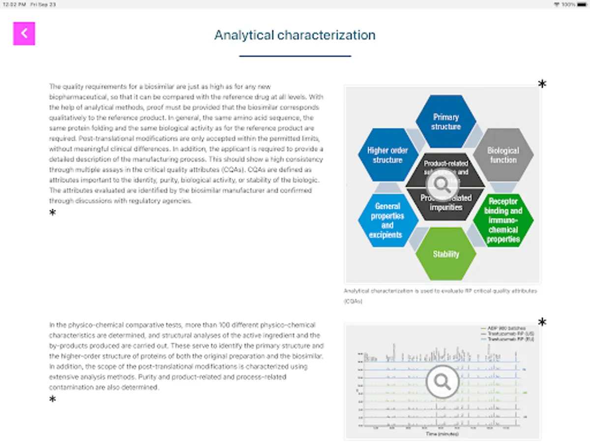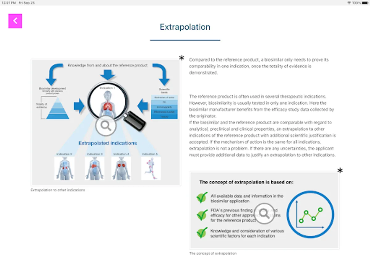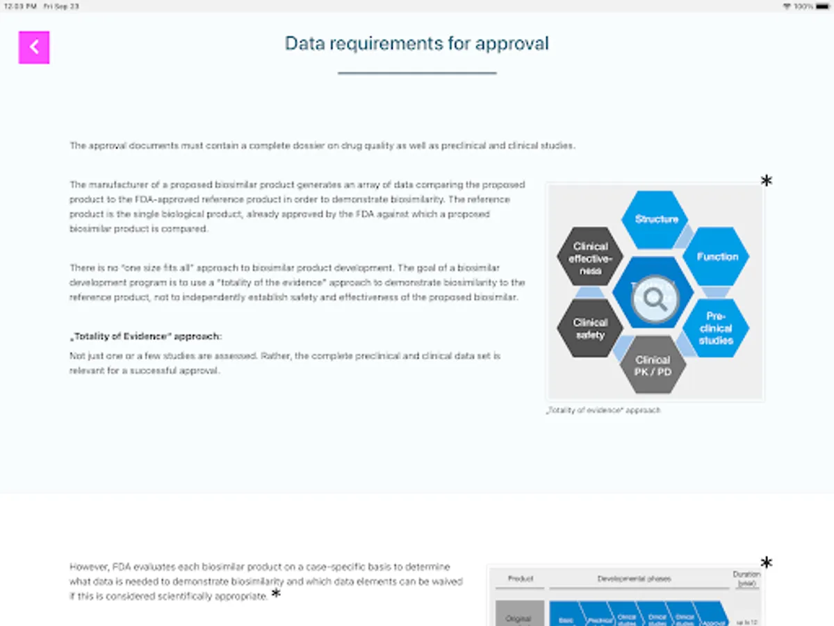 • Manufacture, safety and approval of biosimilars: Concise and brief explanations on the most important topics can be found in our educative app.