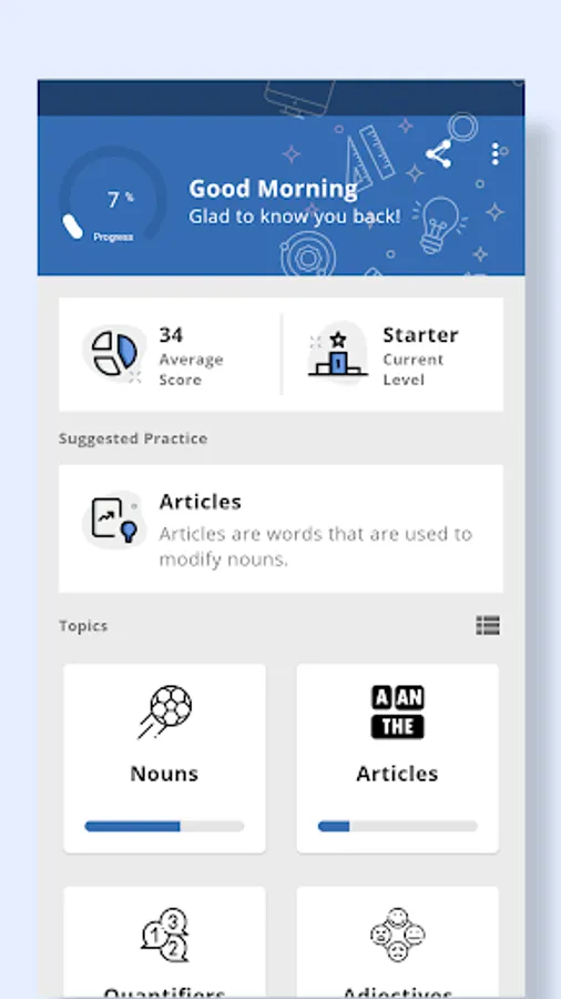 A user is categorically Intermediate if he or she has not achieved min 70 average score of 80% practice with intermediate level