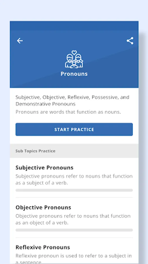 Current level is an interpretation of user grammar knowledge that is assessed through ptactice. There are three levels: