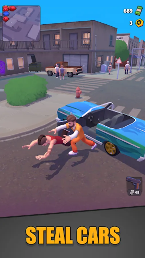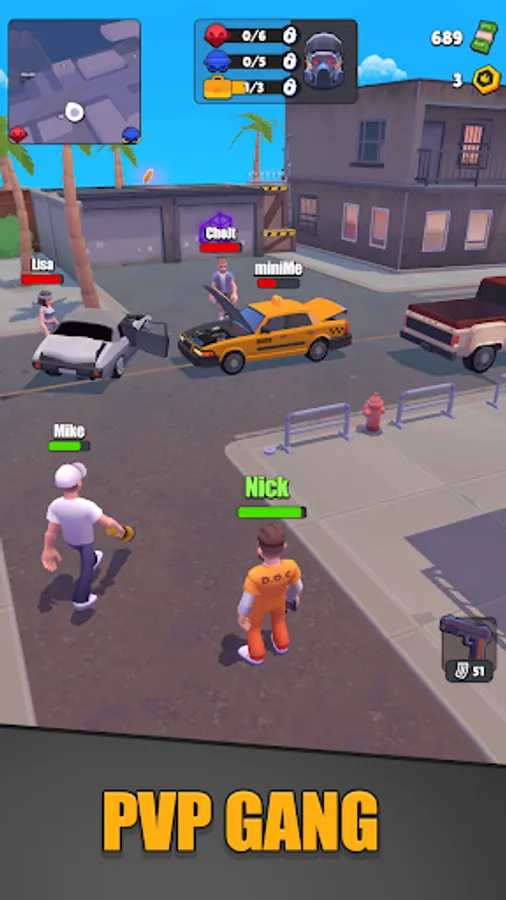 In Gang Stars: Online, you can earn skill points and in-game currency by hijacking cars from these war city streets. Use the mini-map navigation to locate the target vehicle and safely deliver it to the special garage. Engage in adrenaline-pumping pursuits, outsmarting law enforcement and rival gangs in the process. Additionally, transport contraband using your trusty truck, carefully evading authorities to reap substantial rewards in this gang action simulator.