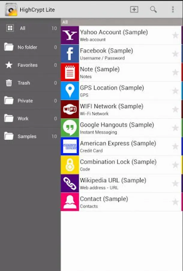 With HighCrypt Password Manager all your private information is really safe and ordered. Your data is encrypted so it is safe, even if your device is lost or stolen.