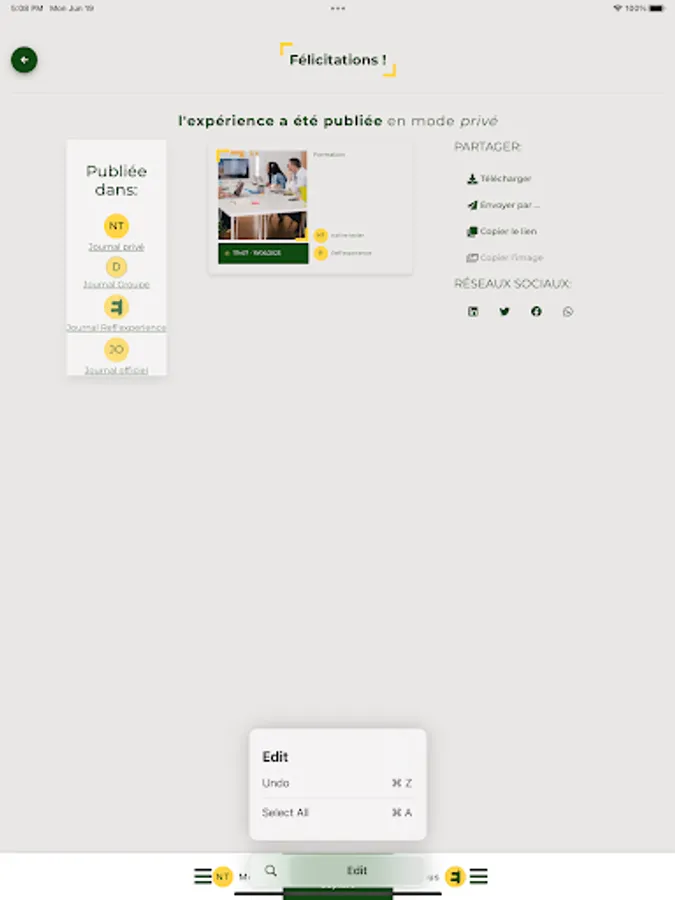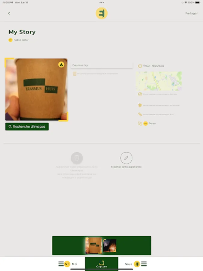 Refl'experience est un outil qui permet de capturer des moments de son quotidien via une photo et un texte, puis d'y associer des caractéristiques : compétences, lieu, date, lien web, hashtag. Toutes ces expériences capturées peuvent ensuite être assemblées sous différents formats : sous forme de portrait ou de chronique. Les utilisateurs gardent le contrôle complet sur leurs données et peuvent les partager avec leur communauté ou avec tout le monde s'ils le souhaitent.