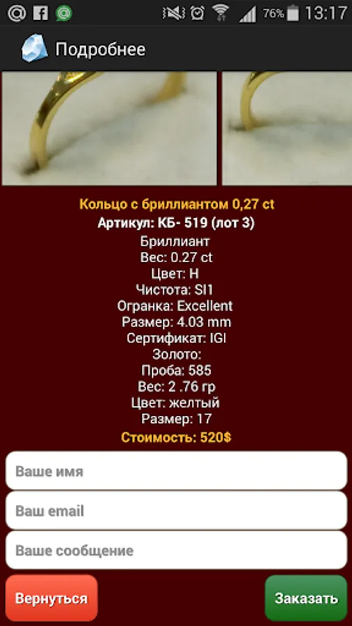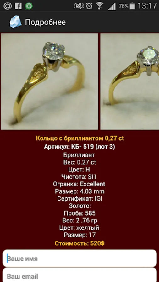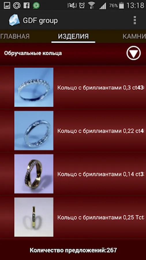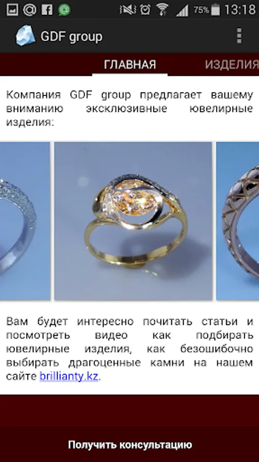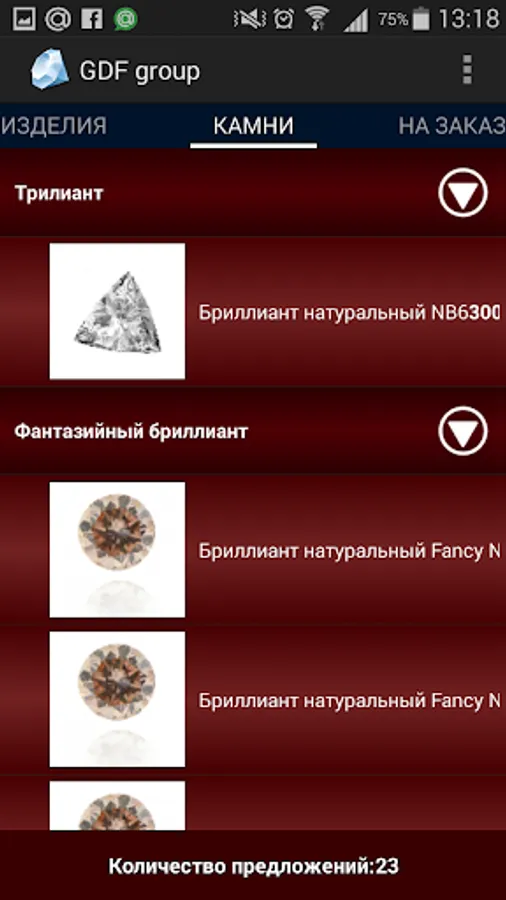 The company "GDF group" has entered the market and offers diamonds and jewelry with them on exchange rates. The application includes: