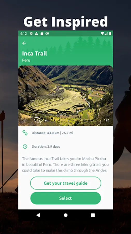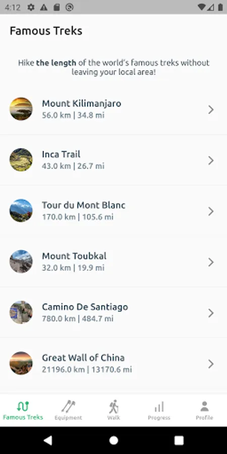 - travellers who plan on embarking on a life changing journey to hike one of the many famous treks can use the app by walking the distance of famous locations without leaving their cities!