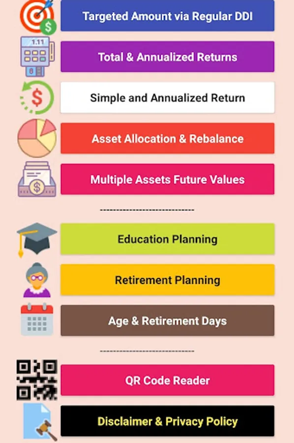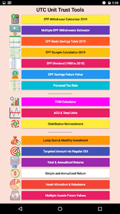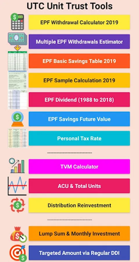 Calculations for individuals to do own financial planning. Unit Trust Consultants (UTC) can use the tools to do financial planning and service their Unit Trust investors.