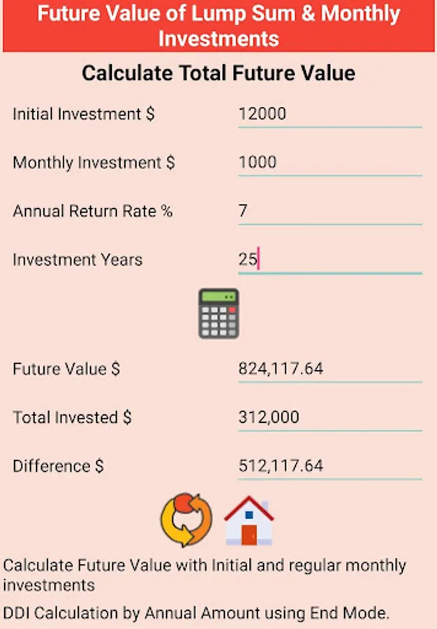i) Calculate Future Value for Lump Sum and Monthly investments.