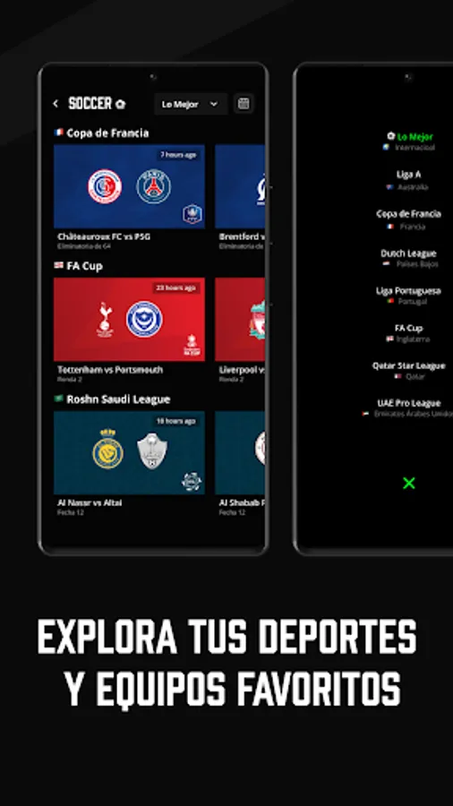 Con Highlights App podrás seguir de cerca la FA Cup, la Copa de Francia, el PGA y LPGA Tour, ATP y WTA Tour, Liga ACB, LPF Argentina, Brasileirão Serie A, y muchos más torneos alrededor del mundo 🌎 Todo en un solo lugar 📲