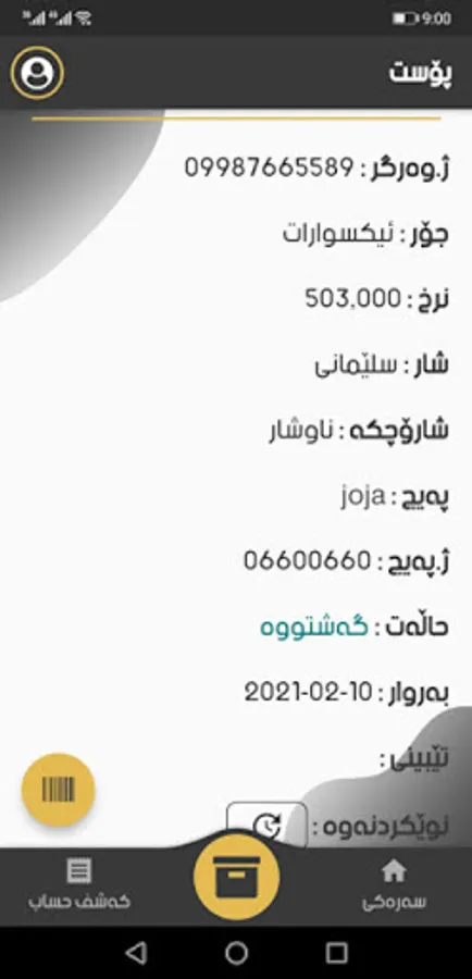 بتوانن خۆتن بێن و بەریدەکانمان لێ وەربگرن زۆر باشتر ئەبوو ، ئەم خزمەتگوزاریە بۆ هاوبەشەکانتان زۆر کار ئاسانیە ، بۆ ئەم خزمەتگوزاریە لەناوخۆی بازاڕ بێ بەرامبەر و لە دەرەوەی بازاڕ ١٠٠٠ دینار لە فرۆشیار وەربگرن ڕەخنە و پێشنیار بۆ بەرەوپێشچونی ئێوەیە و دڵسۆزی منە بۆ ئێوە ، هیوام وایە دڵتان گەرد نەگرێت