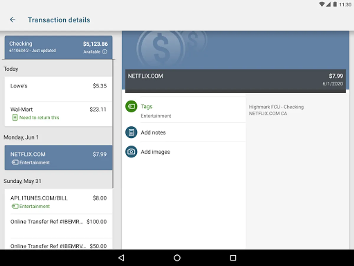 Keep your transactions organized by allowing you to add tags, notes and photos of receipts and checks.