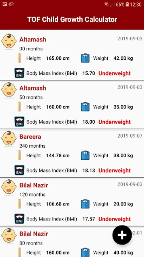 TOF Child Growth Calculator Screenshots