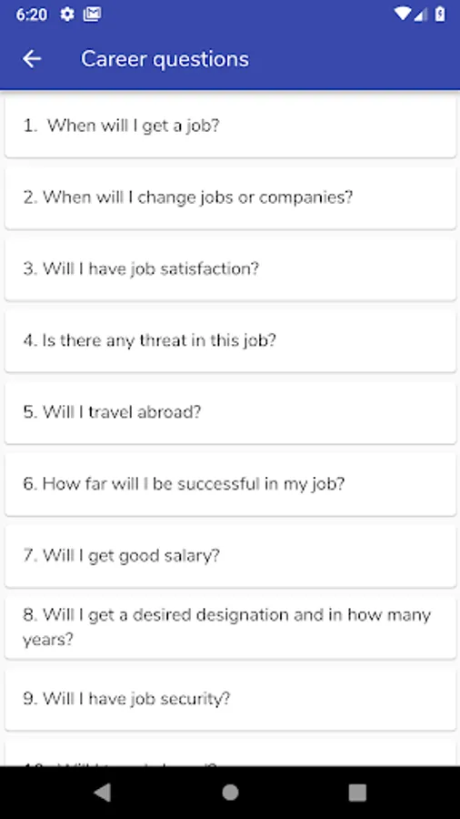 This app also contains the alpha version of an AI chatbot, Ri Shi. The bot captures Dr. Nayanar’s deep knowledge and unique methods to answer all your career-related questions. Ri Shi analyzes your charts based on your date, time, and place of birth. He provides you highly relevant and accurate predictions and suggestions to all your problems using Integrated Positive Astrology, invented by Dr. Shivakumar. This is, however, in development currently and is able to answer limited career questions.
