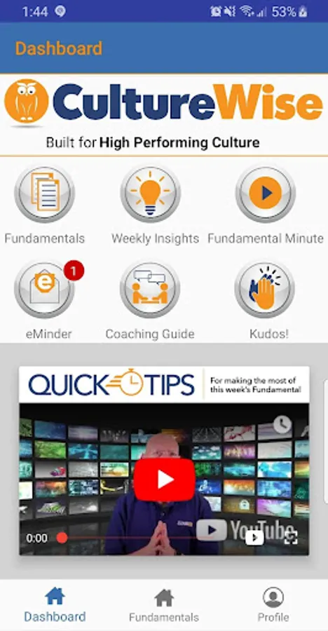 CultureWise™ is the interactive app that puts the Fundamentals System™ from High Performing Culture in the hands of employees across the hall, across town, or across the globe. Users can view a company’s entire set of Fundamentals and access a huge library of learning resources to give them a deeper understanding of each Fundamental.