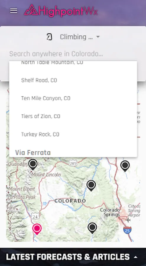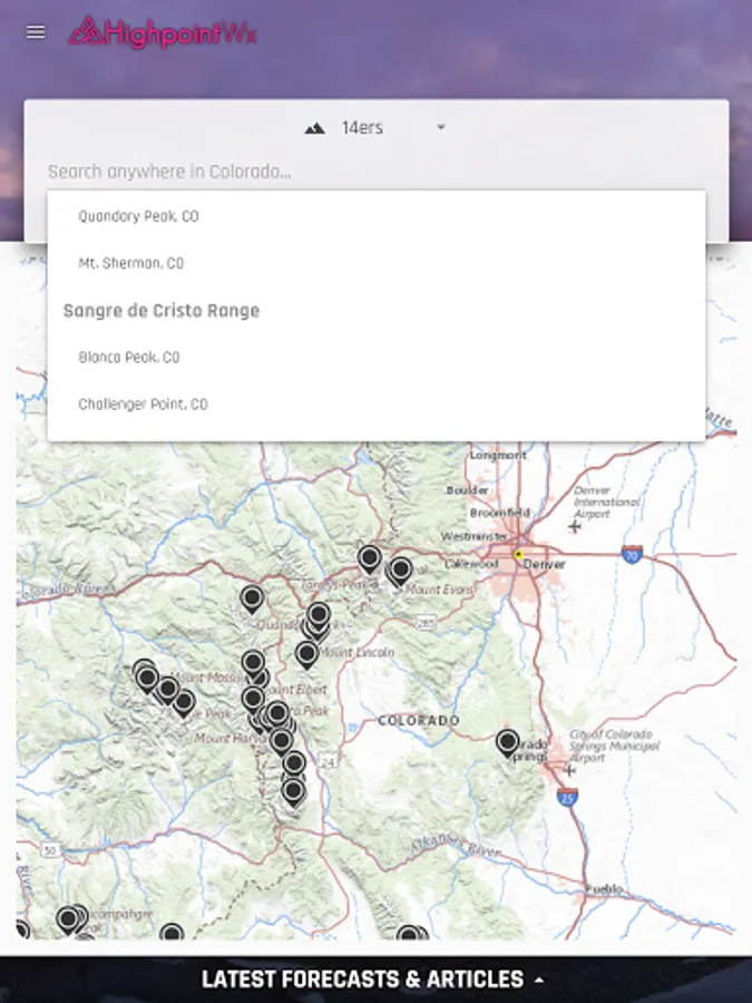 The app provides an easy lookup for common ski resorts, backcountry locations, 14ers, and climbing areas, in addition to the ability to search for anywhere in the region or input coordinates directly. We also provide easy access to our handwritten forecasts, which are prepared by meteorologists and experienced outdoor recreationalists with an eye on mountaineering safety (lightning, winds) and backcountry avalanche conditions.