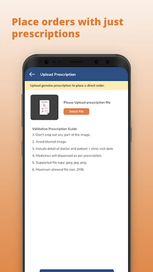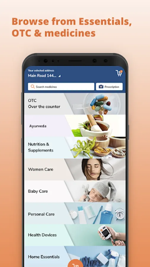 1) Search from a list of medicines, health tests, packages & a wide range of health care products. Upload a valid doctor's note (prescription) from a registered medical practitioner.