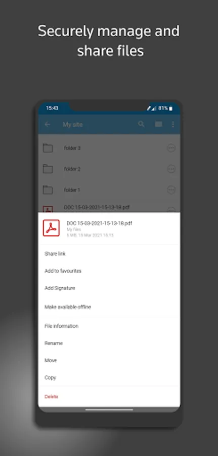 • View and manage all of your favourite sites, folders and files, synced with the HighQ platform.