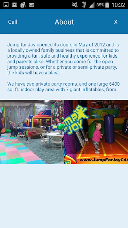 Jump for Joy opened its doors in May of 2012 and is a locally owned family business that is committed to providing a fun, safe and healthy experience for kids and parents alike. Whether you come for the open jump sessions, or for a private or semi-private party, the kids will have a blast.