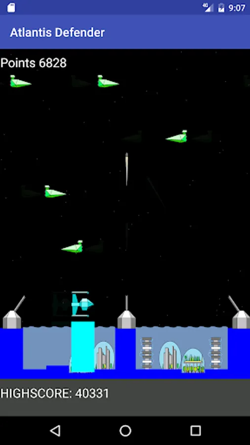 In this simple arcade game you can try to destroy the invading enemy fleet with three huge anti-aircraft-guns. The guns are fixed on three islands over the surface above the city of Atlantis. Fire what you can to end this evil invasion!