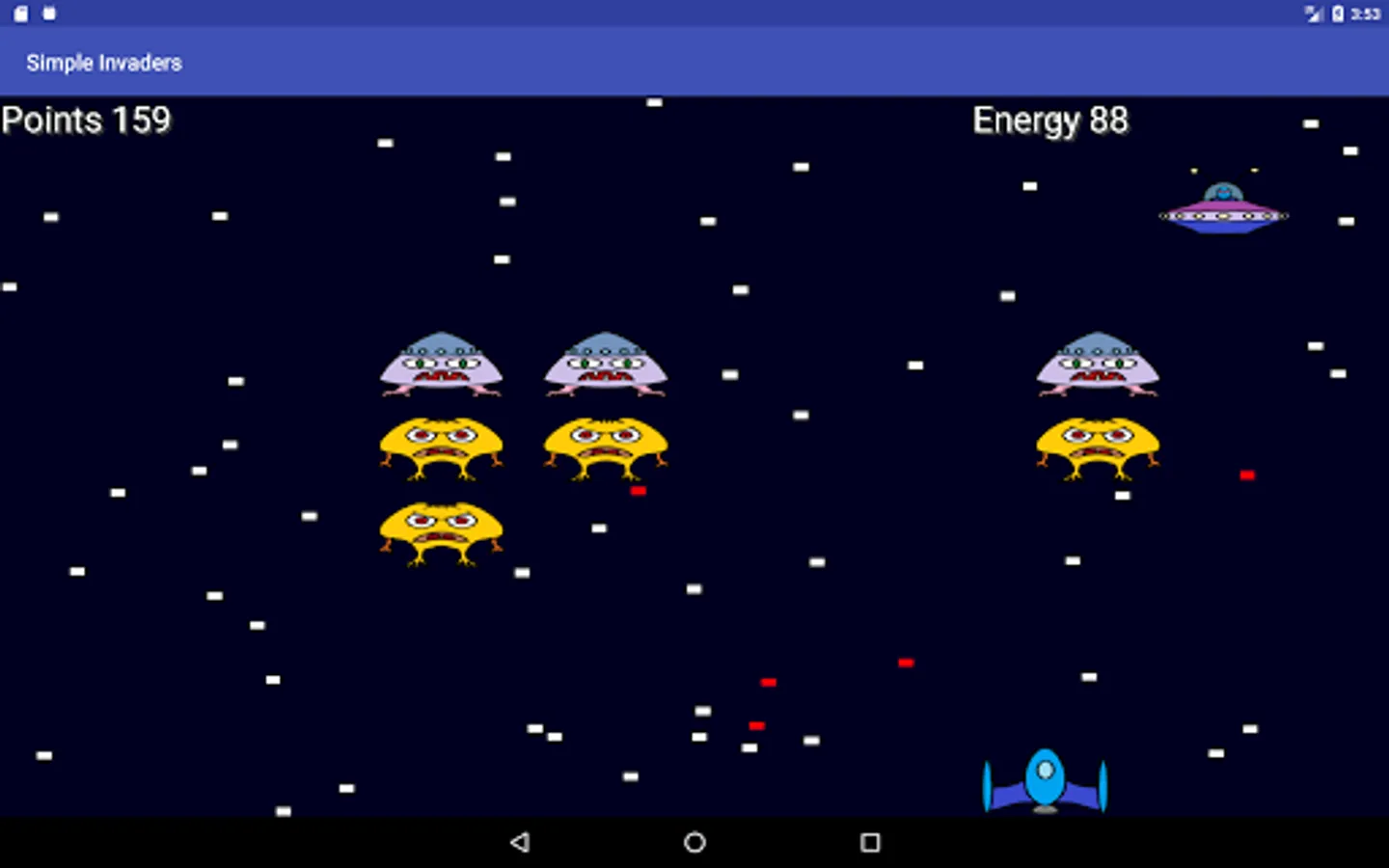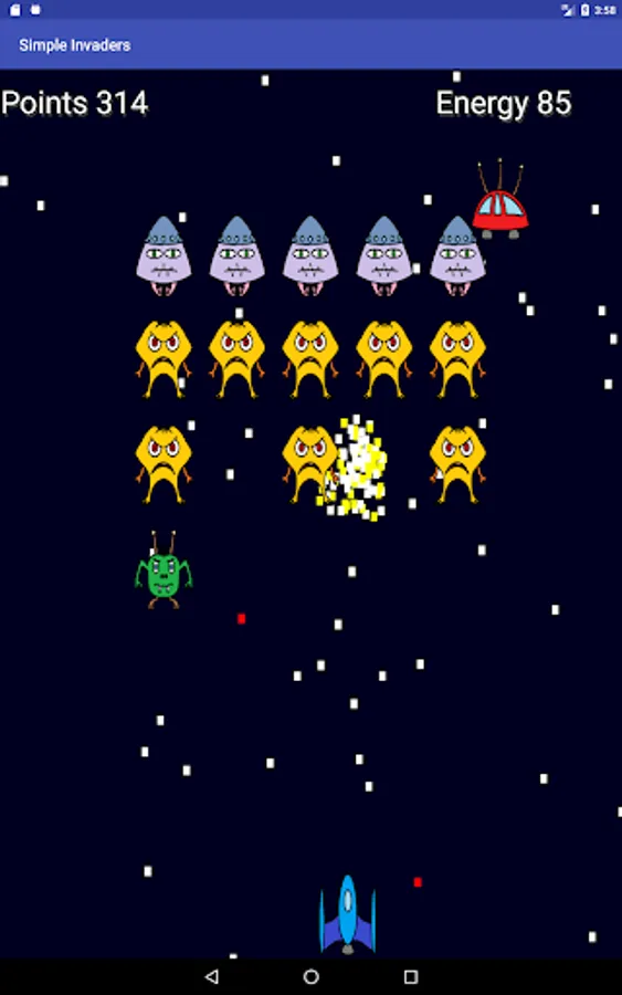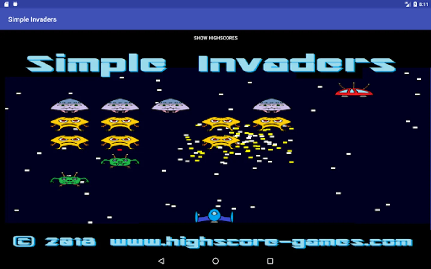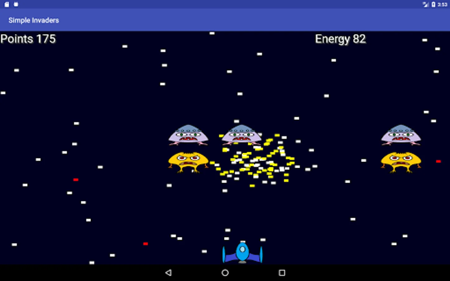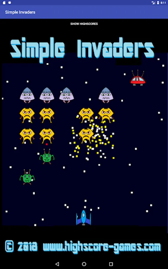 You are our hero and you will fight with your spaceship against the evil invaders. Fire with your lasergun to clear the enemy lines.