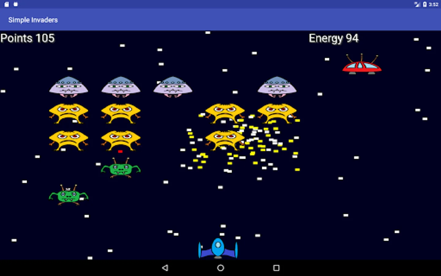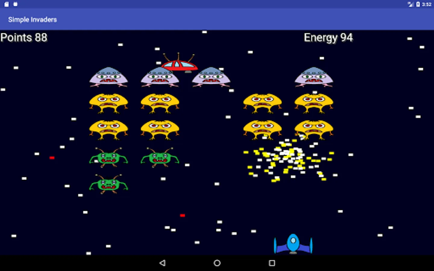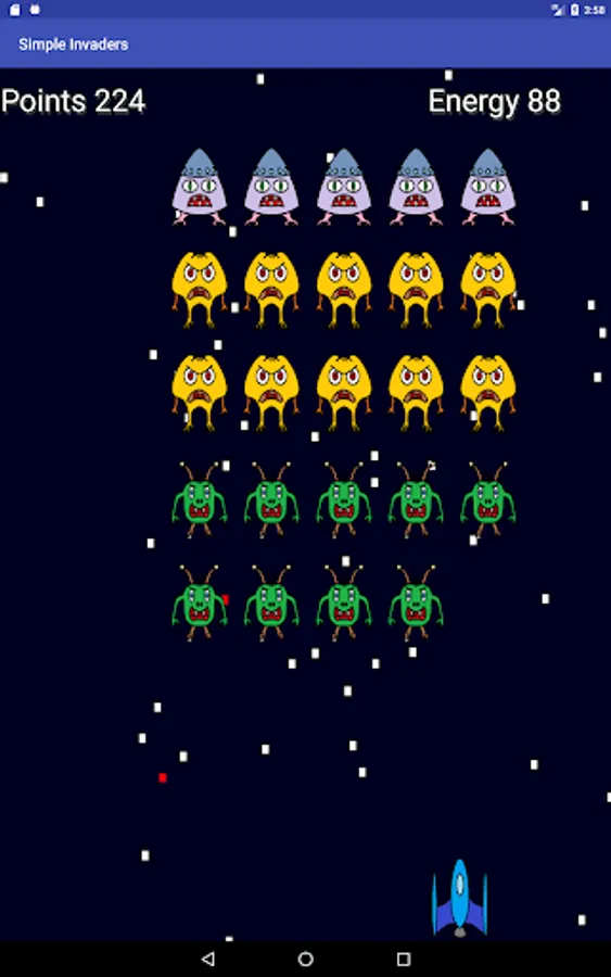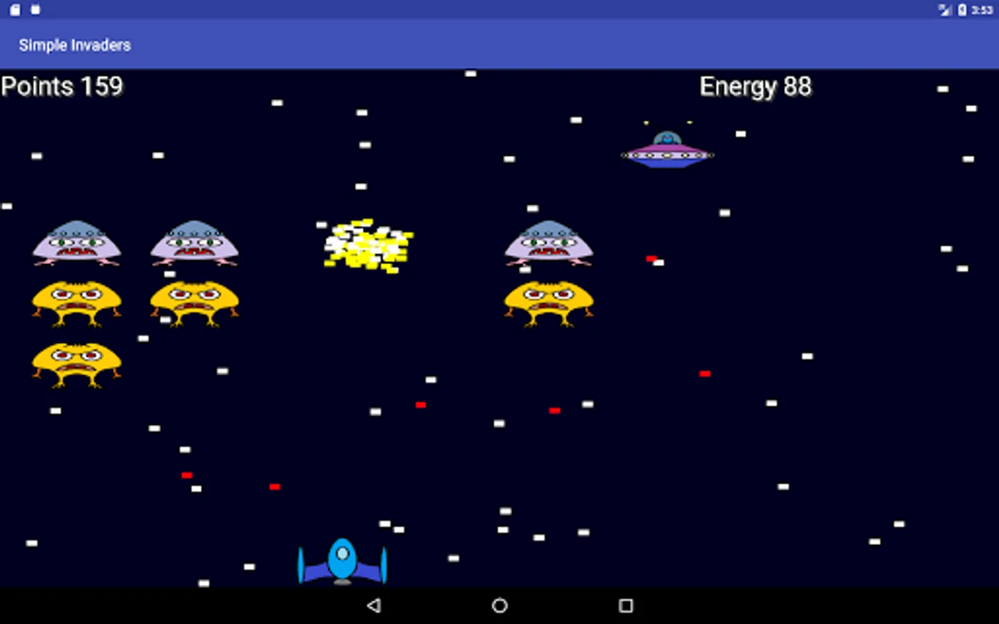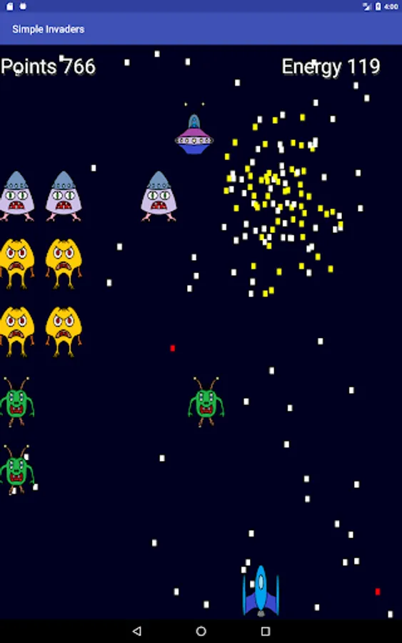 You are our hero and you will fight with your spaceship against the evil invaders. Fire with your lasergun to clear the enemy lines.