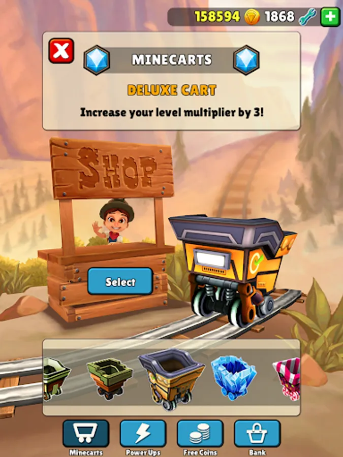 - Unleash Mega Diamond Rush, use Powerful Bombs, and give your carts a Rocket Powered Boost