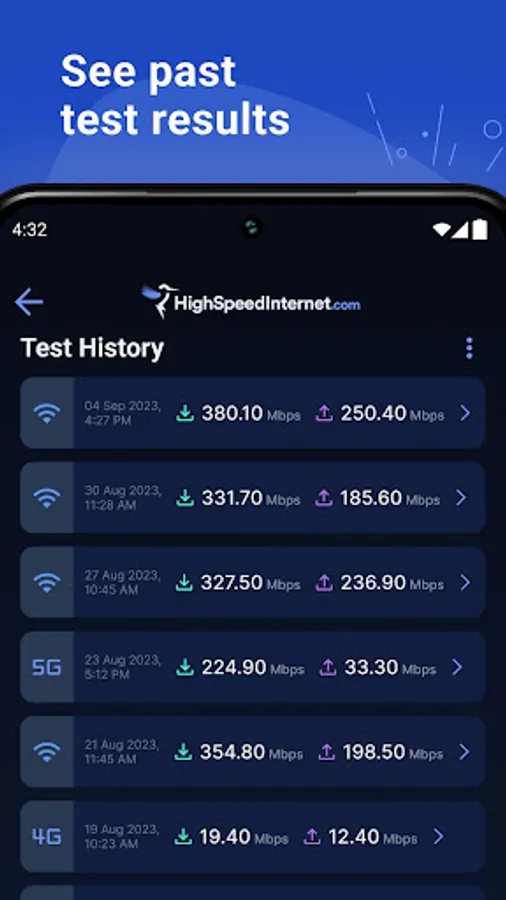 Millions of users trust HighSpeedInternet.com to test their internet speed over the web and compare internet service providers. Now you can more easily test using mobile devices and track your speeds over time with our easy-to-use app.