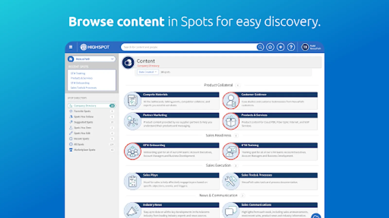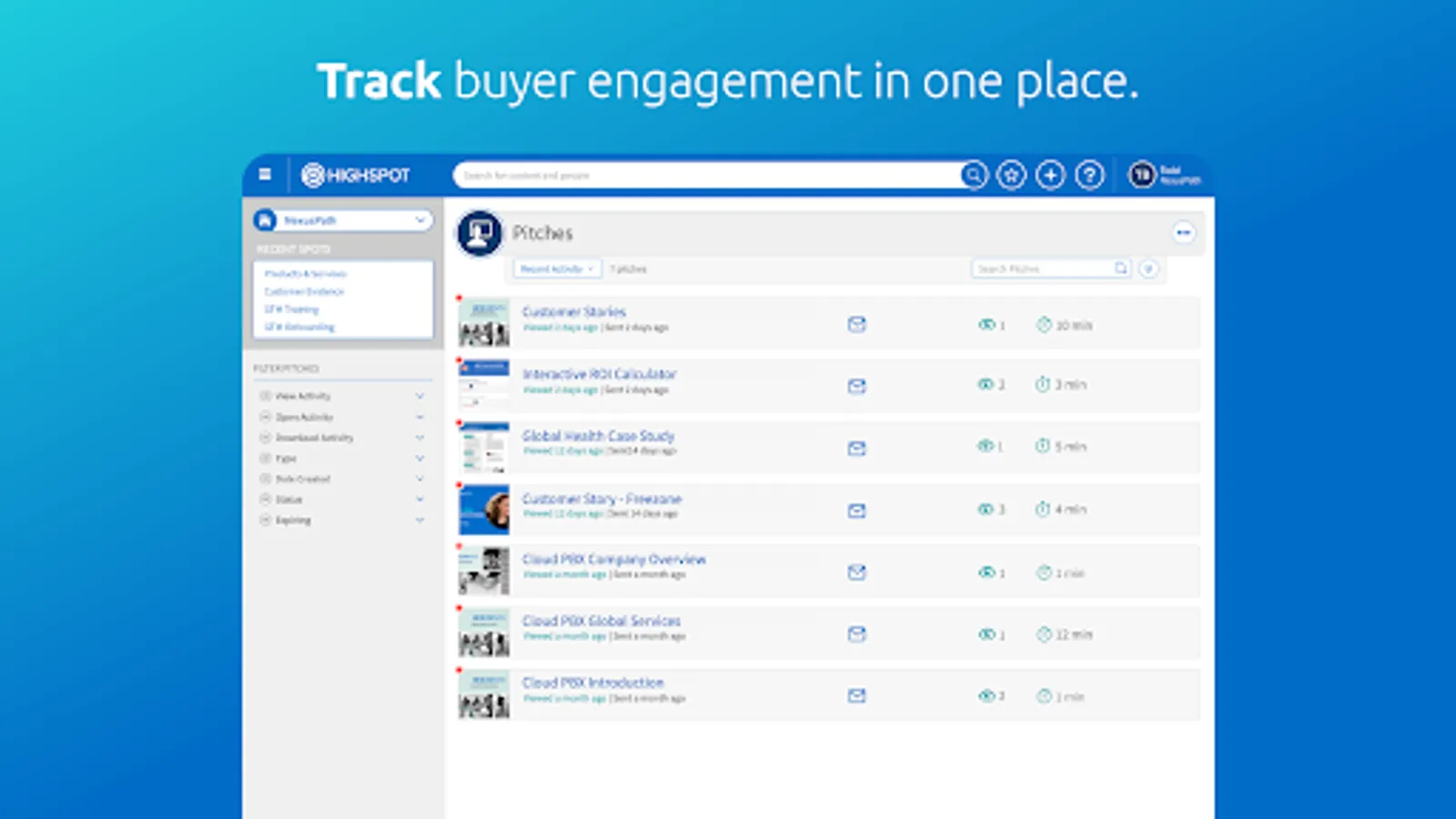 Get the power of Highspot on any device, wherever you are. Share content with buyers and improve your skills by using our natively built app that’s designed for mobile.