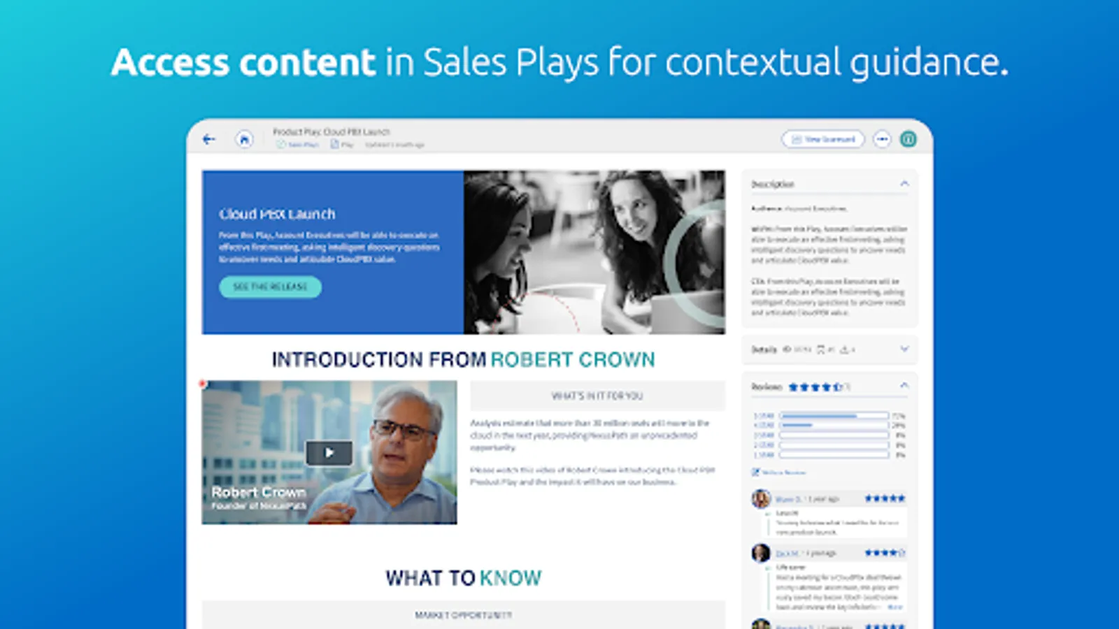 With Content to engage customers, Guidance to land strategy, Training to improve skills, Coaching to elevate performance, and Analytics to inform action, organizations can evolve faster, adapt to changing competitive pressures, and drive revenue growth.