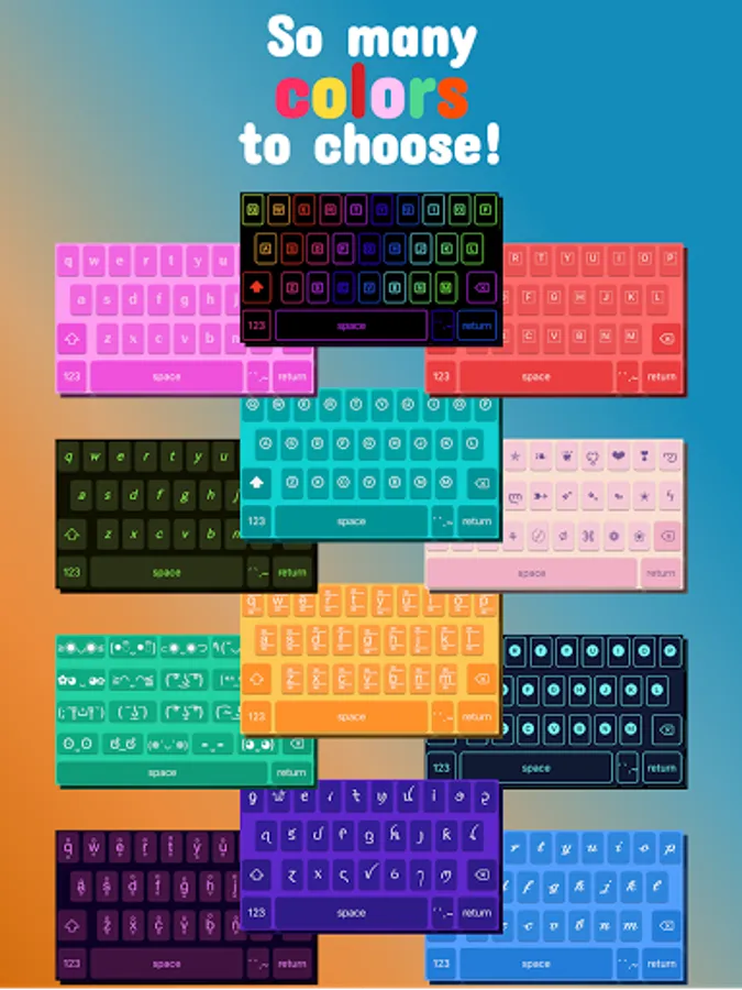 You can this app to change the keyboard themes, keyboard colors & keyboard backgrounds to further personalize your phone keyboard with this app
