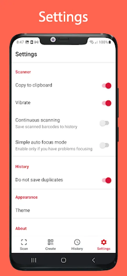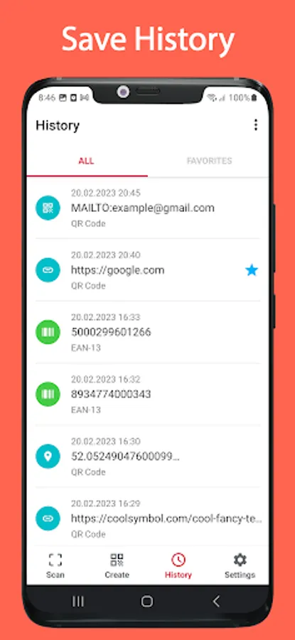 - This tool automatically keeps track of the code that users have scanned and users can access them later in a separate History tab on the app.
