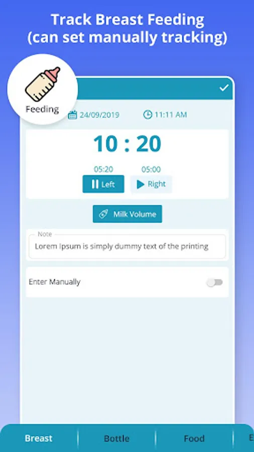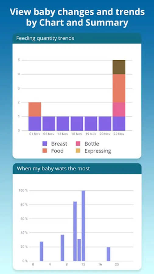 - App track parameters like feed baby, baby food tracker and tracks baby feeding patterns.