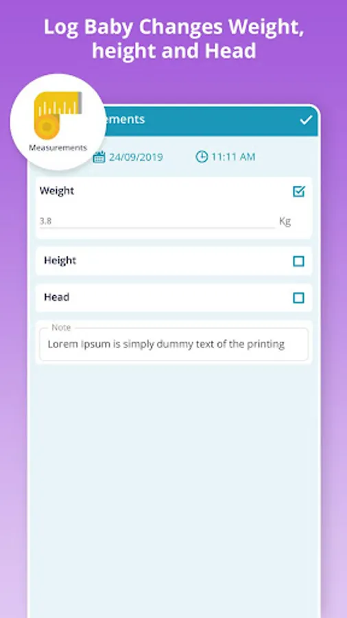 - Write notes for Newborn feeding, breastfeeds, sleeps, diaper changes, weight, height and head circumference growth