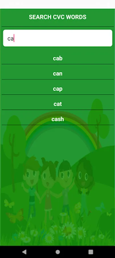 English CVC Words 2021 contains the list of CVC (Consonant Vowel Consonant) words to improve and help kids to learn and read English words.