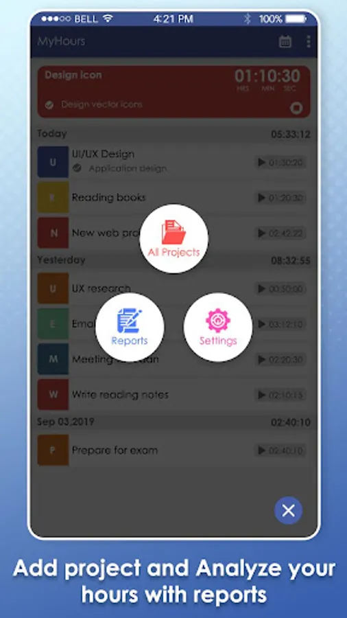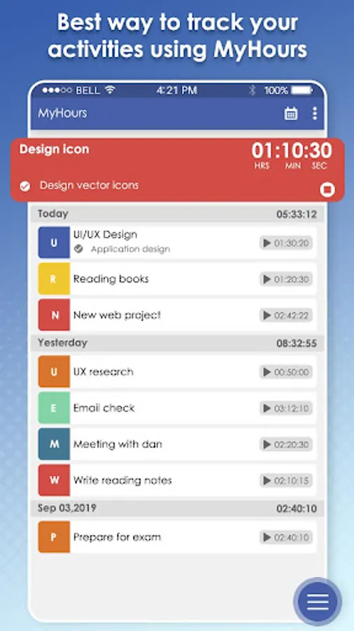 Balance your working life, improve your time management and control your phone time, improve your focus and your productivity. App will tracking hours of your activities/projects/tasks.