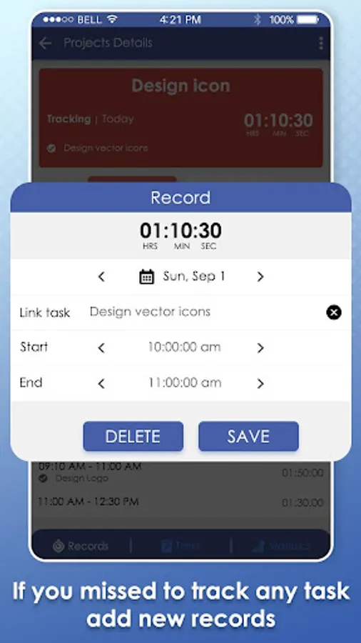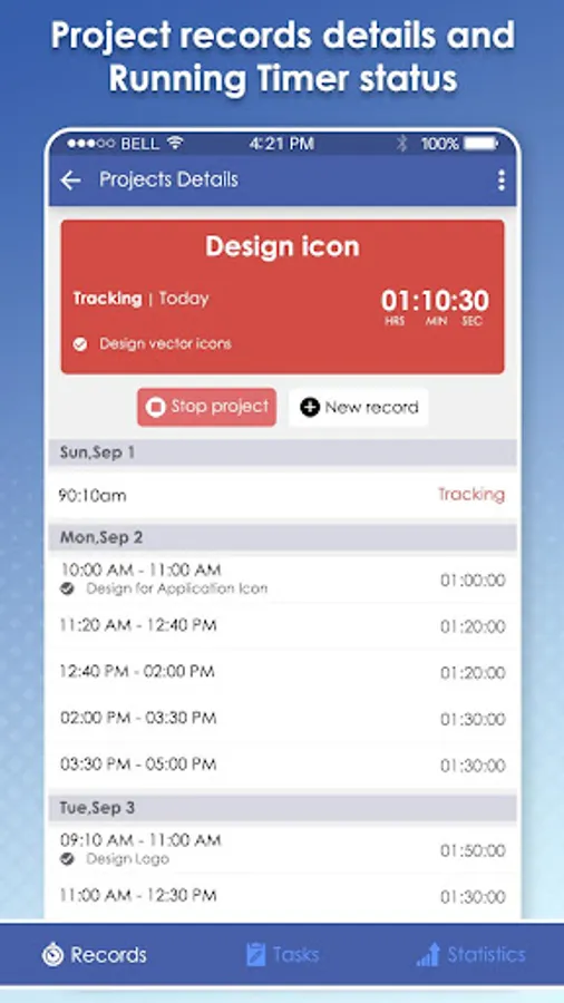 - Time Tracking and hours tracker, Calendar reports and Timeline details