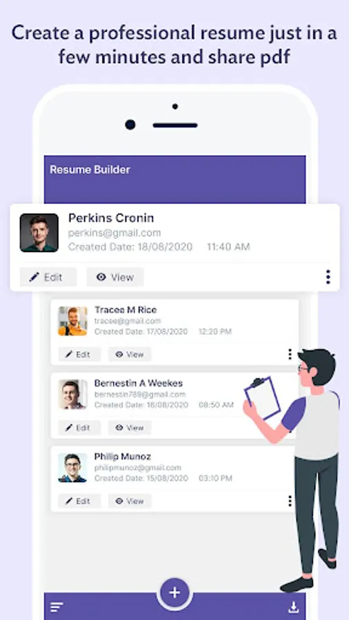 - Create a professional resume just in a few minutes and share pdf