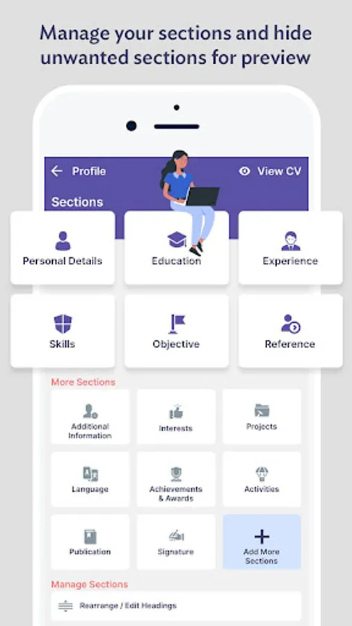 - Customizable resume sections