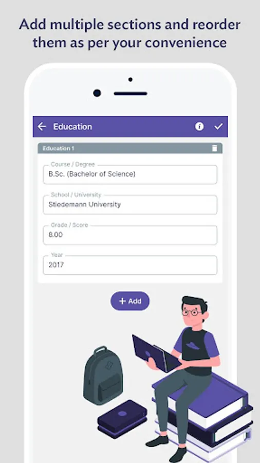 - Add multiple sections and reorder them as per your convenience